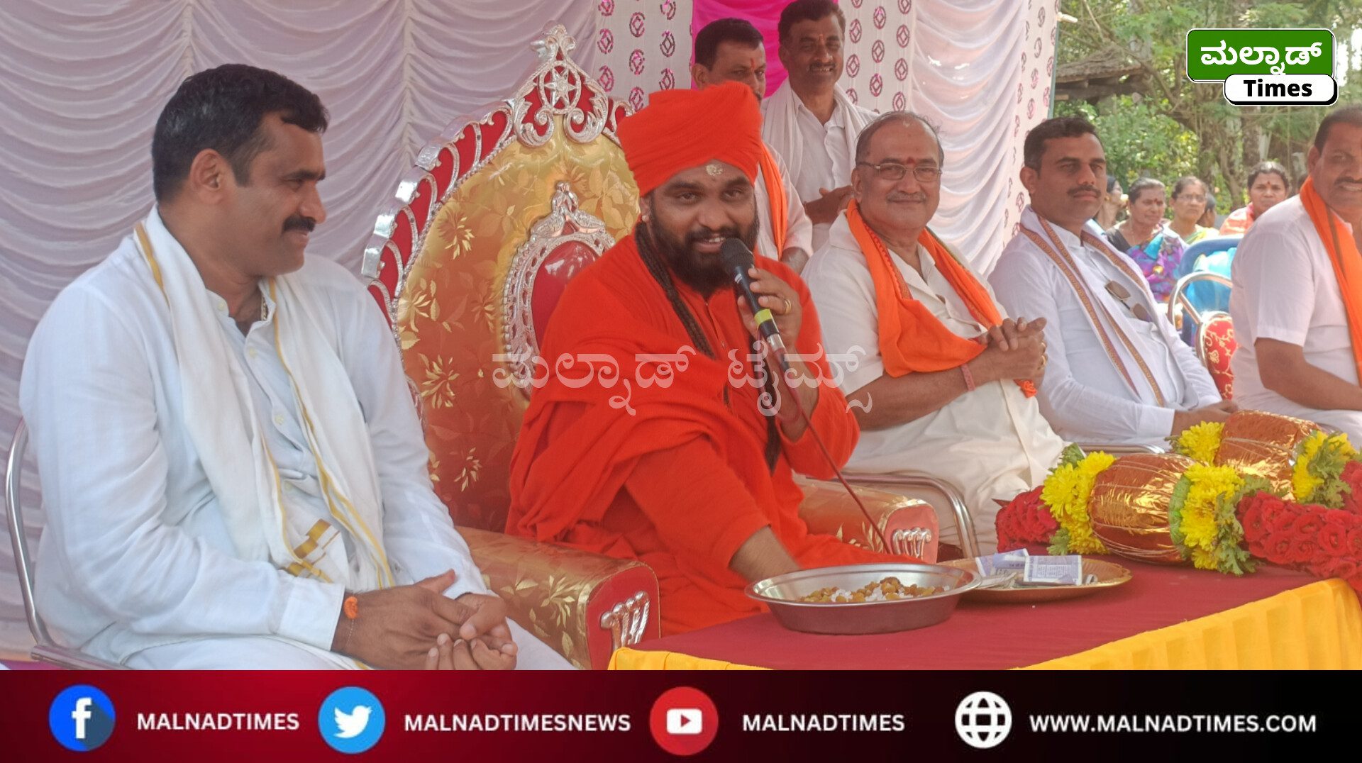 ಪಟ್ಟಣದ ಮಾವಿನಕೊಪ್ಪ ಗ್ರಾಮದಲ್ಲಿ ಗ್ರಾಮಸ್ಥರು 3 ಕೋಟಿ ರೂ. ವೆಚ್ಚದಲ್ಲಿ ನಿರ್ಮಿಸುತ್ತಿರುವ ಶ್ರೀ ಗಂಗಾಧರೇಶ್ವರ ಹಾಗು ವಿವಿಧ ಪರಿವಾರ ದೇವರ ನೂತನ ದೇವಸ್ಥಾನಕ್ಕೆ ಶಂಕುಸ್ಥಾಪನೆ ನೆರವೇರಿಸಿದ ಬಳಿಕ ಭಕ್ತಾದಿಗಳನ್ನು ಉದ್ದೇಶಿಸಿ ಆಶೀರ್ವಾಚನ ನೀಡಿದರು.