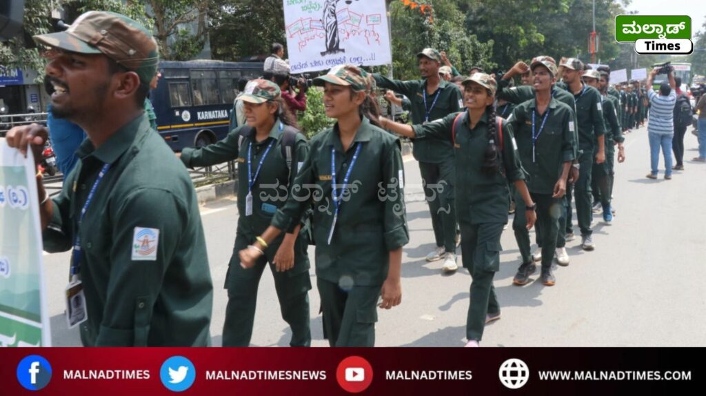 ಶಿವಮೊಗ್ಗ : ಸಹಾಯಕ ಅರಣ್ಯ ಸಂರಕ್ಷಣಾಧಿಕಾರಿ, ವಲಯ ಅರಣ್ಯಾಧಿಕಾರಿ ಮತ್ತು ಉಪವಲಯ ಅರಣ್ಯಾಧಿಕಾರಿ ಹುದ್ದೆಯ ನೇರ ನೇಮಕಾತಿಯಲ್ಲಿ ಬಿ.ಎಸ್ಸಿ ಅರಣ್ಯಶಾಸ್ತ್ರ ಪದವಿಯನ್ನೇ ಕನಿಷ್ಠ ವಿದ್ಯಾರ್ಹತೆಯನ್ನಾಗಿ ಮಾಡುವ ಕುರಿತು ಕ್ರಮ ಕೈಗೊಳ್ಳಬೇಕೆಂದು ಒತ್ತಾಯಿಸಿ ಕರ್ನಾಟಕ ಅರಣ್ಯ ಶಾಸ್ತ್ರ ವಿದ್ಯಾರ್ಥಿಗಳ ಪದವೀಧರರ ಸಂಘದಿಂದ ನಗರದ ಸೈನ್ಸ್ ಮೈದಾನದಿಂದ ಡಿಸಿ ಕಚೇರಿವರೆಗೆ ಪ್ರತಿಭಟನಾ ಮೆರವಣಿಗೆ ನಡೆಸಿ ಜಿಲ್ಲಾಧಿಕಾರಿಗಳ ಮೂಲಕ ಸರ್ಕಾರಕ್ಕೆ ಮನವಿ ಸಲ್ಲಿಸಲಾಯಿತು.