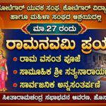 ಮಾ.27ರ ಶುಕ್ರವಾರ ಬೆಳಿಗ್ಗೆ 10ಗಂಟೆಗೆ ರಾಮವಸಂತ ಪೂಜೆ ನಂತರ ಸಾಮೂಹಿಕ ಸತ್ಯನಾರಾಯಣ ವ್ರತ ಮಧ್ಯಾಹ್ನ 1ಗಂಟೆಗೆ ಪ್ರಸಾದ ವಿತರಣೆ ನಂತರ ಸಾರ್ವಜನಿಕ ಅನ್ನಸಂತರ್ಪಣೆ ಕಾರ್ಯಕ್ರಮಗಳು ನಡೆಯಲಿದ್ದು ಸಂಜೆ 7ಗಂಟೆಗೆ ವೇದಿಕೆ ಕಾರ್ಯಕ್ರಮ ನಡೆಯಲಿದೆ ವೇದಿಕೆಯ ಅಧ್ಯಕ್ಷತೆಯನ್ನು ಯುವಕ ಸಂಘದ ಅಧ್ಯಕ್ಷ ಮಾವಿನಕೊಪ್ಪ ಸತೀಶ್ ವಹಿಸಲಿದ್ದು ಮುಖ್ಯ ಅತಿಥಿಯಾಗಿ ಯುವಕ ಸಂಘದ ಗೌರವಾಧ್ಯಕ್ಷರಾದ ಅರುಣ್ಕುಮಾರ್, ಕೋಟೆಗಾರ್ ವಿದ್ಯಾವರ್ಧಕ ಸಂಘದ ಅಧ್ಯಕ್ಷ ಶಶಿಧರ್ನಾಯ್ಕ್, ಕೋಟೆಗಾರ್ ವಿದ್ಯಾವರ್ಧಕ ಸಂಘದ ಗೌರವಾಧ್ಯಕ್ಷ ಪಿ.ಆರ್. ಸಂಜೀವ, ಮಹಿಳಾ ಸಂಘದ ಅಧ್ಯಕ್ಷೆ ದೇವಿ ಹನುಮಂತರವರು ಆಗಮಿಸಲಿದ್ದಾರೆ.