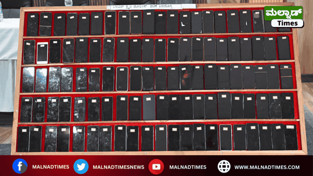 ಶಿವಮೊಗ್ಗ:ಕಳೆದ ಮೂರು ತಿಂಗಳ ಅವಧಿಯಲ್ಲಿ ಅಂದಾಜು ₹16,35,000 ಮೌಲ್ಯದ ಒಟ್ಟು 110 ಕಳುವಾದ ಮೊಬೈಲ್ ಫೋನ್ಗಳನ್ನು ಶಿವಮೊಗ್ಗ ಪೊಲೀಸರು ಪತ್ತೆಹಚ್ಚಿದ್ದಾರೆ. ಇಂದು (ಜುಲೈ 29, 2024) ದಿನದಂದು ನಗರದ ಡಿಇಆರ್ ಪೊಲೀಸ್ ಸಭಾಂಗಣದಲ್ಲಿ ಆಯೋಜಿಸಲಾದ ಕಾರ್ಯಕ್ರಮದಲ್ಲಿ ಈ ಫೋನ್ಗಳನ್ನು ಮೂಲ ಮಾಲೀಕರಿಗೆ ಹಿಂತಿರುಗಿಸಲಾಯಿತು.