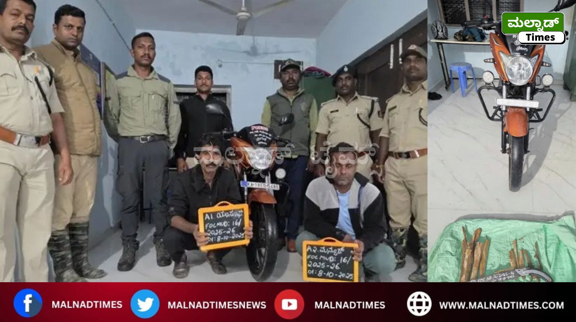 ಅ. 8ರಂದು ಬುಧವಾರ ರಾತ್ರಿ 8 ಗಂಟೆ ಸುಮಾರಿಗೆ ಮೂಡಿಗೆರೆ ಶಾಖೆ ವ್ಯಾಪ್ತಿಯಲ್ಲಿ ಕಾರ್ಯಾಚರಣೆ ನಡೆಸಿದ ಅರಣ್ಯ ಇಲಾಖೆ ಸಿಬ್ಬಂದಿ, ಸುಜುಕಿ ಕಂಪನಿಯ ಬೈಕಿನಿಂದ ಅಕ್ರಮವಾಗಿ ಸಾಗಿಸುತ್ತಿದ್ದ ಶ್ರೀಗಂಧದ ತುಂಡುಗಳನ್ನು ವಶಪಡಿಸಿಕೊಂಡಿದ್ದಾರೆ.